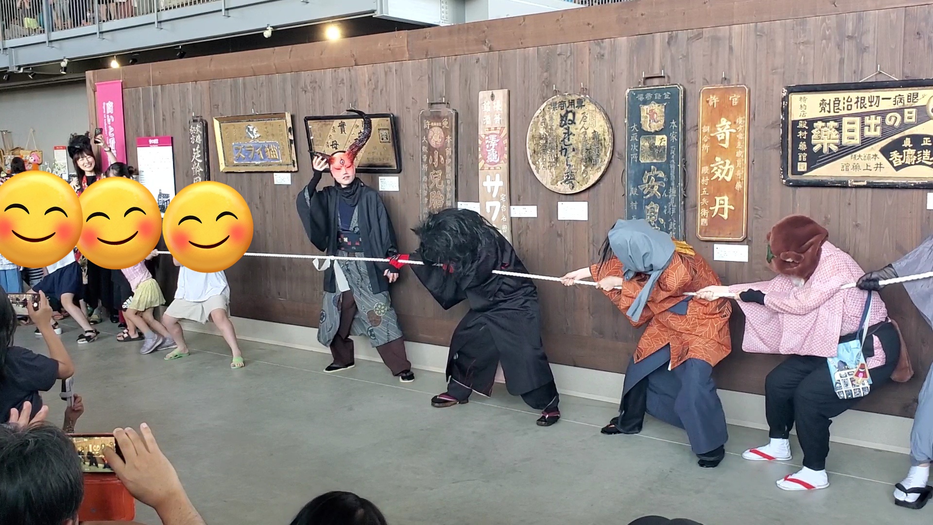 妖怪と綱引きや