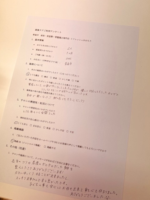 産後1ヶ月でご来店いただいた、青森市在住・20代のお客様。