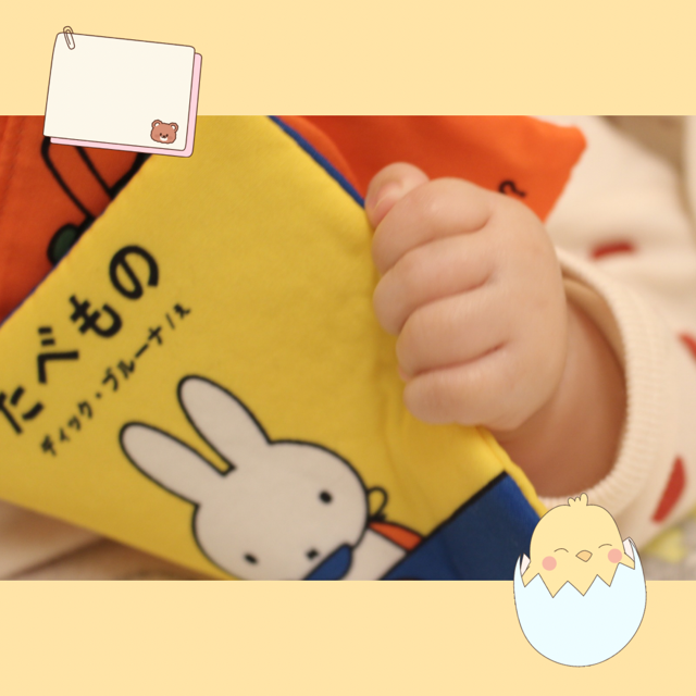 お気に入りの布絵本を上手に掴みながら遊んだり、
